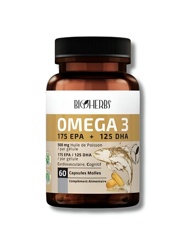 BIOHERBS Omega 3 60 capsules est un complément alimentaire naturel qui aide à maintenir la santé du cœur, du cerveau et des articulations.