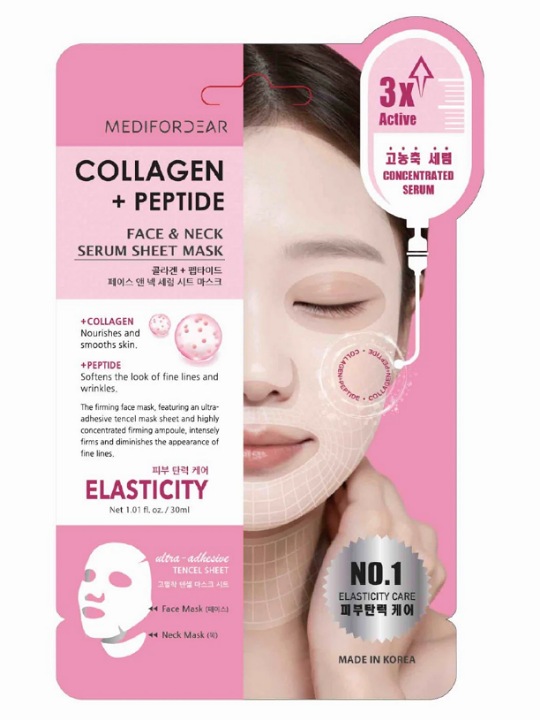 Le masque visage et cou collagène + peptides est un masque coréen en tissu conçu pour une hydratation intense, restaurer l’élasticité et atténuer l’apparence des rides. Sa formule nourrissante contient du collagène hydrolysé pour hydrater en profondeur les peaux sèches et ternes, ainsi que des peptides pour raffermir et lisser les ridules. Appliquez le masque sur le visage et le cou propres, laissez poser 15 à 20 minutes, puis retirez-le. Massez l’essence restante pour une absorption optimale et un teint rajeuni et éclatant. Ce soin anti-âge est particulièrement bénéfique pour les peaux sèches ou matures en perte d’élasticité.