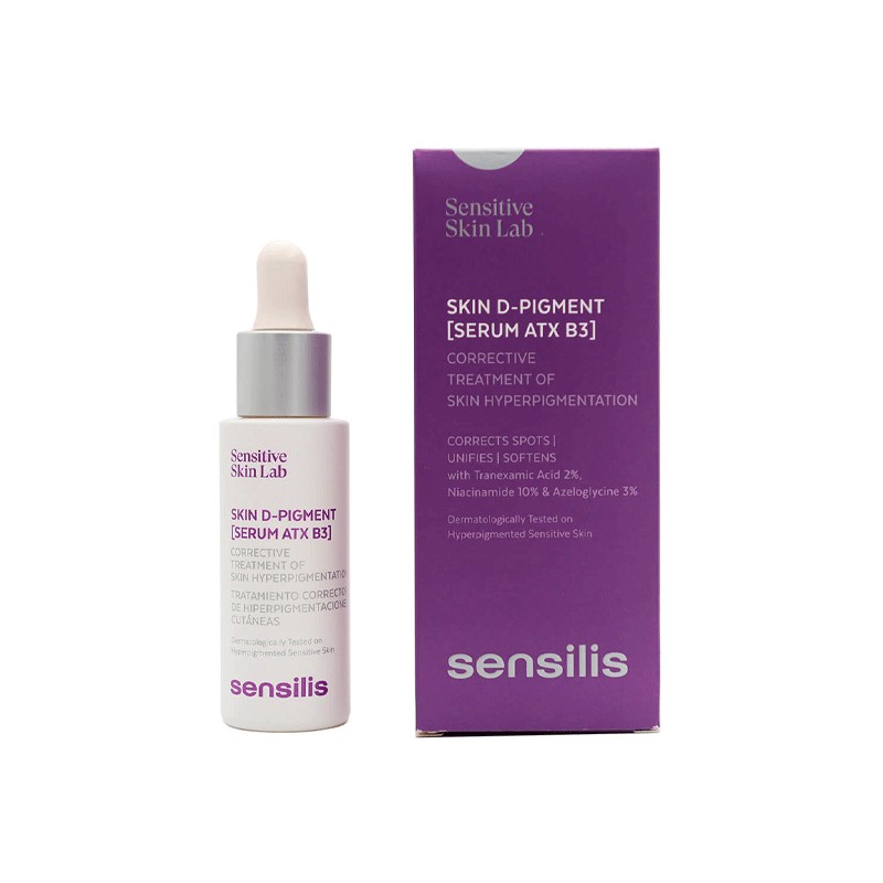 Le Sérum Skin D-Pigment [ATX B3] de Sensilis est un soin léger et efficace conçu pour traiter et prévenir l’apparition des taches brunes sur la peau. Ce sérum est idéal pour les peaux hyperpigmentées, y compris celles des phototypes foncés (types I à IV), souffrant de mélasma, chloasma ou lentigines.