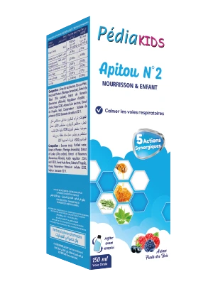 VITAL PEDIAKIDS APITOU N°2 est un sirop destiné à soulager la toux sèche chez l’enfant. Il se présente sous forme de solution buvable, facile à administrer et adaptée à une utilisation quotidienne.
